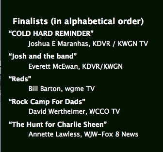 I was named a finalist for editing my story “The Hunt for Charlie Sheen.” Fox 8 News photographer Roc Woodrum photographed the piece. I reported and edited it. I must say it’s among my favorite pieces in Cleveland – and will be for many years to come.