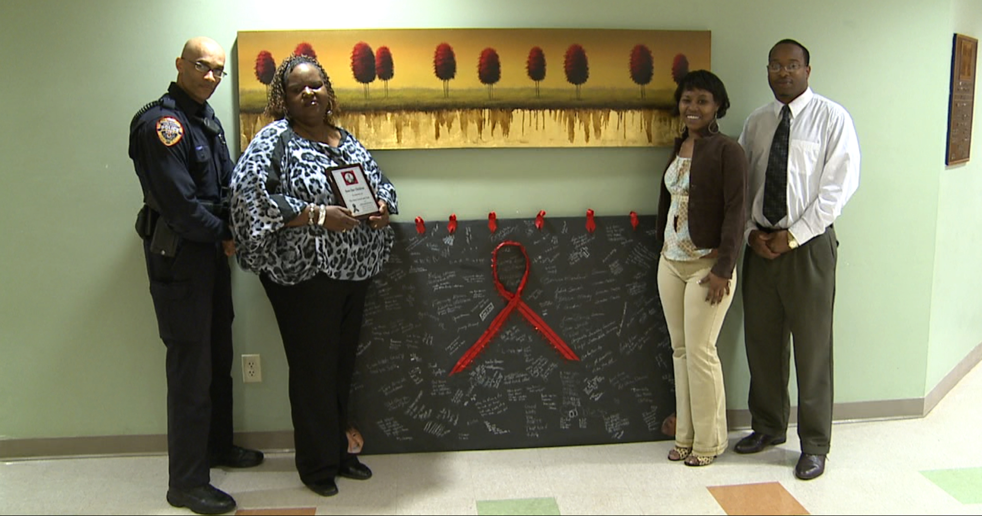 Riverside Park, a community within CMHA, created a large red and black banner, which are Chardon High School colors. Covered with ribbons and pictures, the poster had more than 200 signatures from residents and Cleveland city officials.