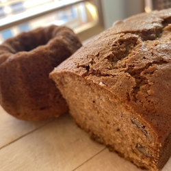 5. Bake in oven for 45 minutes. I did check mine around 35 minutes for smaller loaf pans, which were done faster, but my 6×3 pan did need 45 minutes to bake. A larger pan may need a full hour, so do a toothpick test to see if it comes out clean after pressing it in the the baked bread.)
