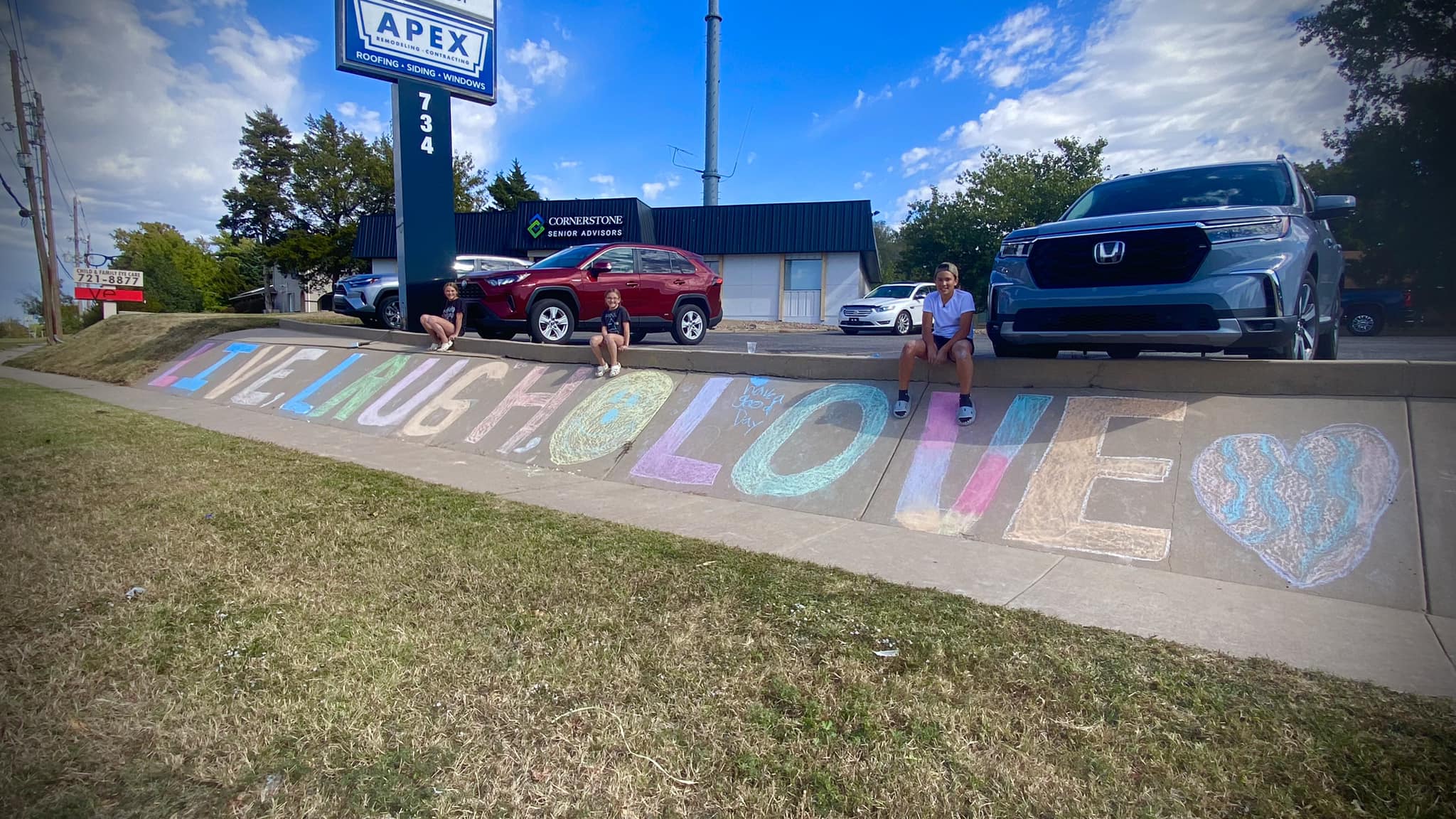 Along the edge of an elevated parking lot wall, they had one simple message. Bright, bold letters measuring several feet long read, “LIVE, LAUGH, LOVE.”