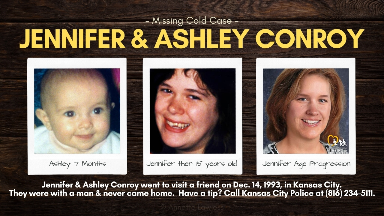 Jennifer Lynn Conroy and her infant daughter, Ashley, were last seen on Dec. 14, 1993. They lived with Jennifer’s grandmother in the 1000 block of Monroe in Kansas City, Mo.