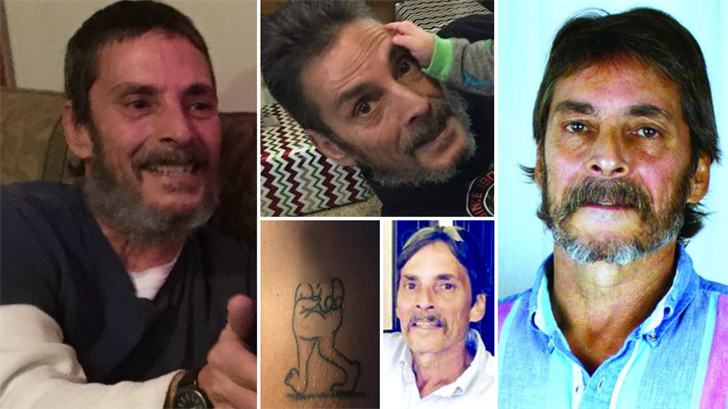 Distinguishing marks: often had a beard and mustache; three large scars on stomach and one on his back; tattoo on right upper arm of a “walking” hand with a middle finger extended (pictured); tattoo on upper left back of a broken skull with smoke that turns into a devil; tattoo on upper left arm of a small knife.